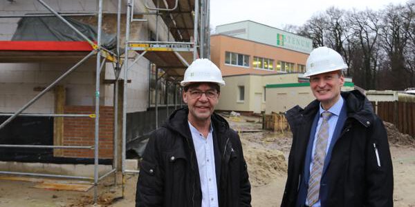 10,5 Millionen Euro investiert die Stenum Ortho GmbH in den Neubau eines Bettenhauses. Einen Eindruck, wie das bis Ende 2022 aussehen wird, erhielt Bürgermeister Ralf Wessel jetzt bei einem Besuch.